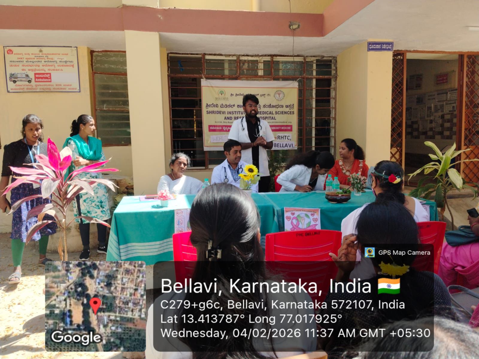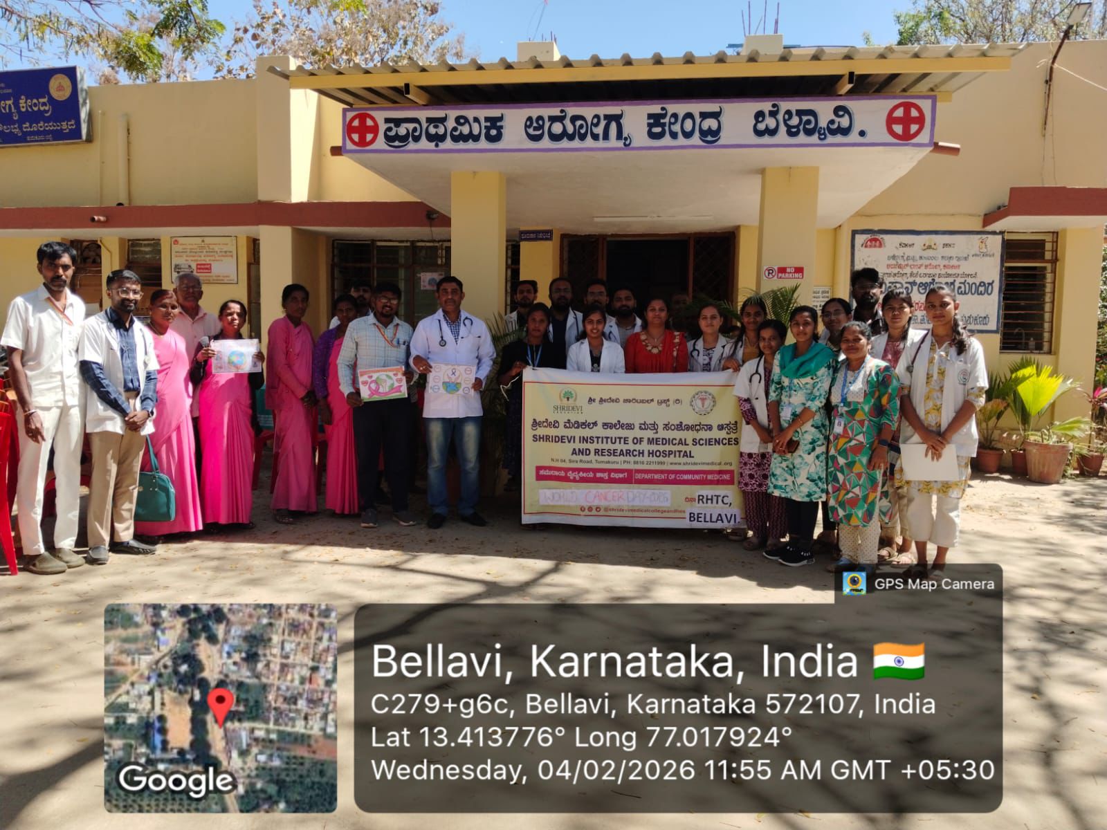 An awareness program was held at PHC Bellavi from RHTC on account of World cancer day , feb 4th – 2026 , theme being – “united by unique “ in collaboration with PHC staff. Dr Sowndarya TA, Dr Shushmita, interns Pavan and Sadvi spoke regarding the cancer awareness, early detection, screening tests and oncology services available at SIMS&RH to the general public.